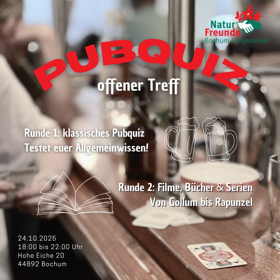 Unsere Jugendgruppe startet am Freitag ab 18:30 mit dem Kneipenquiz. Das NFZ ist aber schon um 18:00 Uhr geöffnet. Gespielt wird in kleinen Teams. Alle sind willkommen, egal ob schon als Team oder alleine!