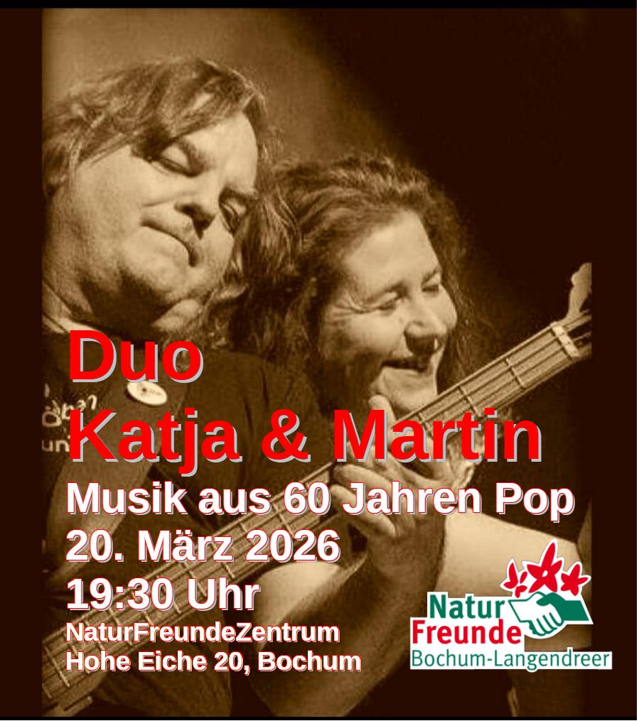 Jeden Freitag ab 18:00 öffnet das NaturFreundeZentrum sind Tür. Man kann Menschen treffen, miteinander spielen, Musik hören und, und, und. Manchmal gibt es Konzerte, Lesungen, Tastings oder anderes. Heute gibt es LiveMusik mit Katja und Martin. Schöne Popcover aus den letzten 60 Jahren zum Zuhören oder auch manchmal zum Mitsingen. Kein Eintritt. Für die Künstler […] |